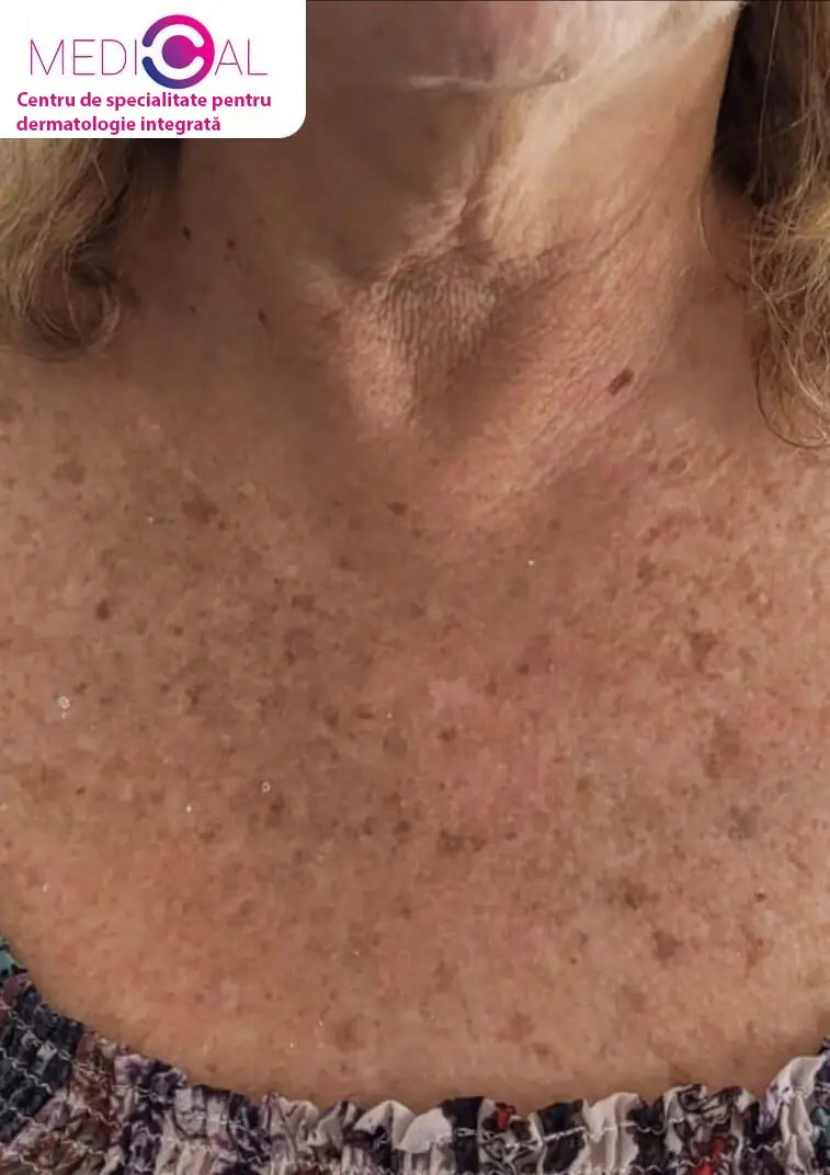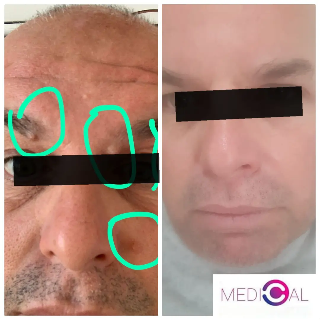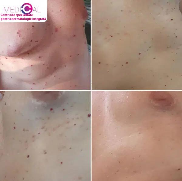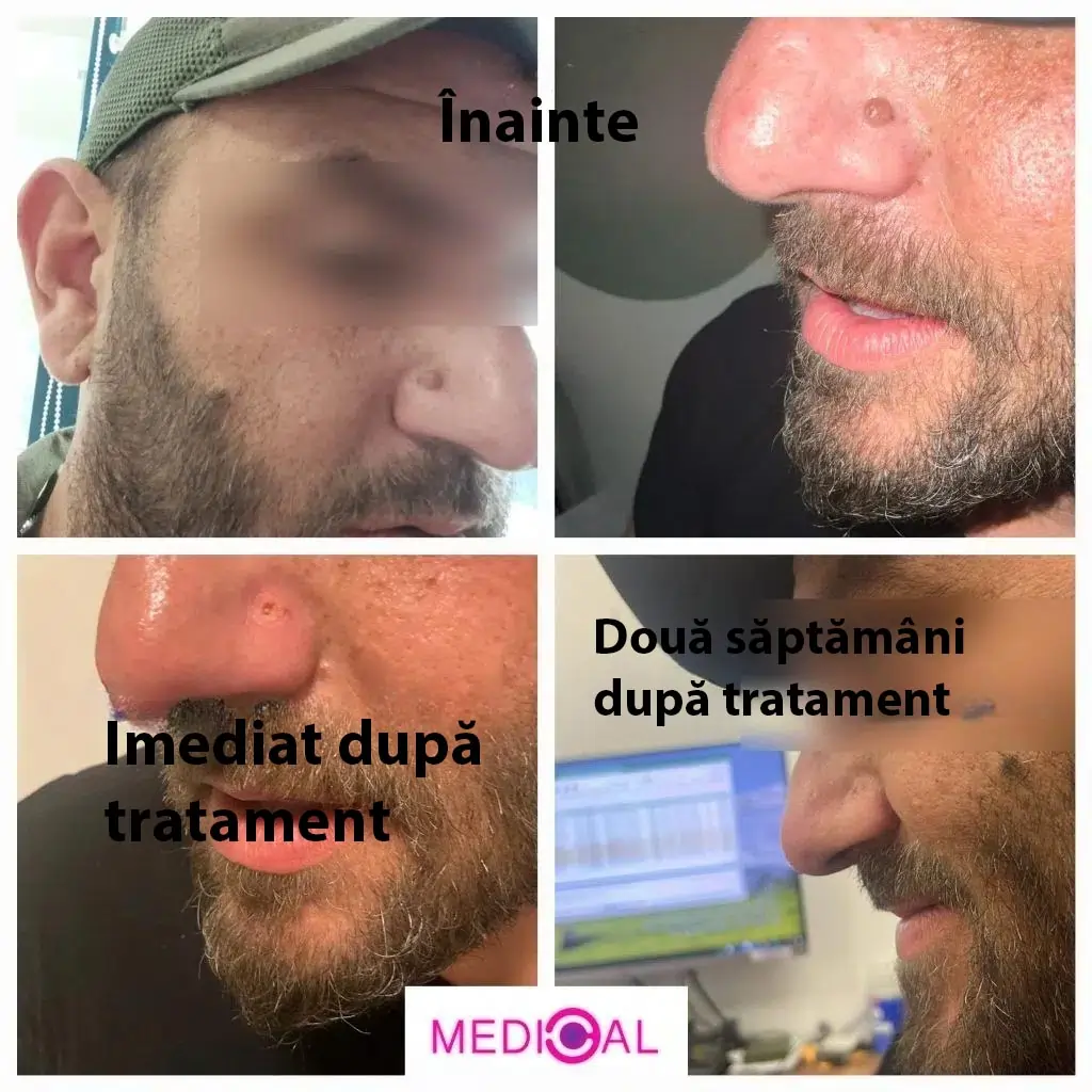 Bine ați venit în galeria „înainte și după” a Medical-C. Aici veți vedea rezultate reale ale îndepărtării alunițelor din diferite zone (față, gât, spate și altele), inclusiv timpul de vindecare și informații scurte pentru fiecare caz. Pentru comparație și înțelegerea amploarei tratamentelor, am inclus și exemple de alunițe, negi cutanați (Skin Tags), xantelasmă la nivelul pleoapelor, pete roșii / hemangioame, milium și alte leziuni cutanate. În galerie apar leziuni cutanate frecvente pe care le tratăm cu laser, precis, fără sutură, obținând rezultate netede și exacte. Galeria are rolul de a ilustra precizia, uniformitatea rezultatelor și îmbunătățirea estetică naturală.
