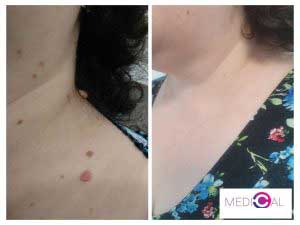 - Eficiență ridicată – după unul sau două tratamente, alunițele pot fi eliminate complet. De asemenea, se pot trata zone ale pielii greu accesibile prin alte metode.